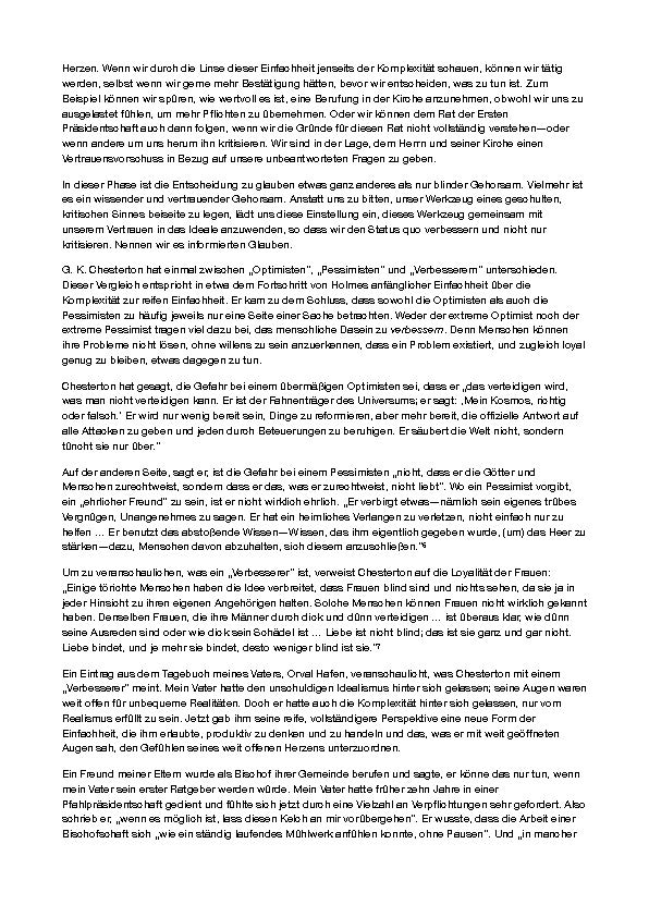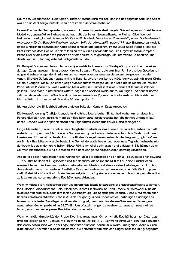 „Das liest sich gut—ich war fasziniert! Ich mag die Erklärung über Einfachheit jenseits der Komplexität. Ich konnte sie auf Erfahrungen in meinem eigenen Leben beziehen. Ich hatte nie darüber nachgedacht, aber diese neue Sichtweise wird mir sehr hilfreich sein, wenn ich mit unerwarteten, glaubensprüfenden Erfahrungen konfrontiert bin.”