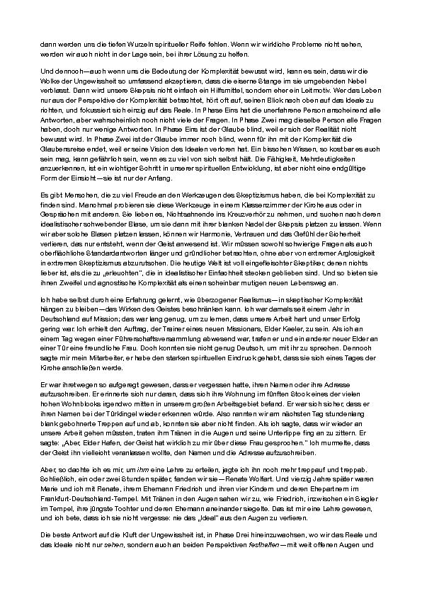 „Wow. Eine Orientierung, die mir hilft, den Sinn der Unsicherheit bei der Entwicklung des Glaubens zu verstehen. (Sie hat mir geholfen zu verstehen), dass innere Konflikte, Zweifel, scheinbare Widersprüche, selbst fast Hoffnungslosigkeit und Furcht, Bausteine für ein stärkeres, mehr erfüllendes Leben (sein können).”